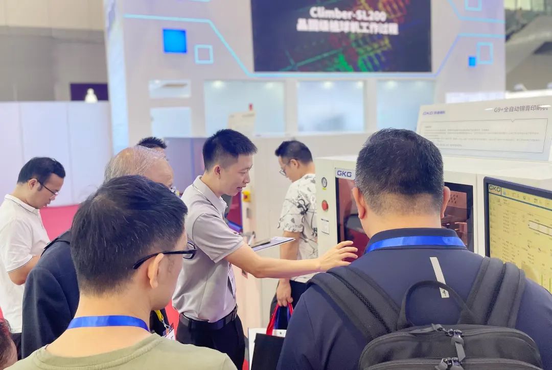 GKG凱格精機本次展出適用于不同行業(yè)、不同印刷尺寸的精密錫膏印刷設(shè)備:有小基板專用的全自動錫膏印刷機GT mini,有大尺寸新能源印刷領(lǐng)域?qū)S脵C型H2000,以及適用于IGBT、5G領(lǐng)域、智能穿戴領(lǐng)域、手機領(lǐng)域、半導(dǎo)體領(lǐng)域的單板雙拼獨立校準(zhǔn)印刷機R1-D。